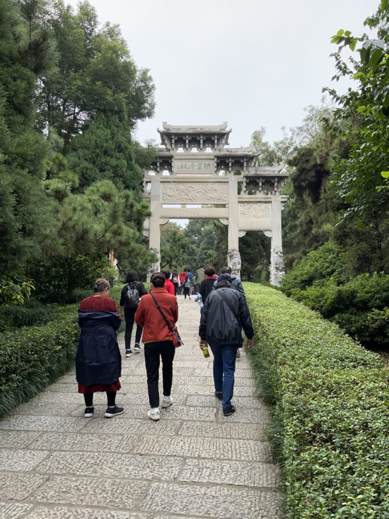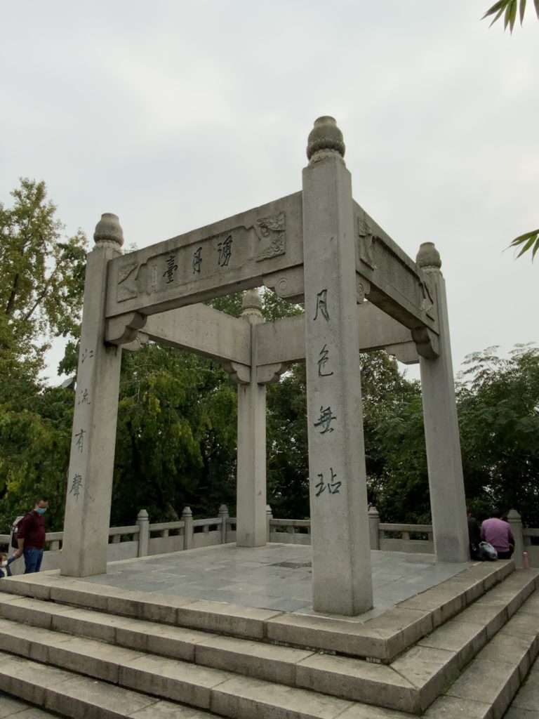 鵝池と詩碑廊の奥に、毛沢東が詠んだ詞が石に刻まれている。